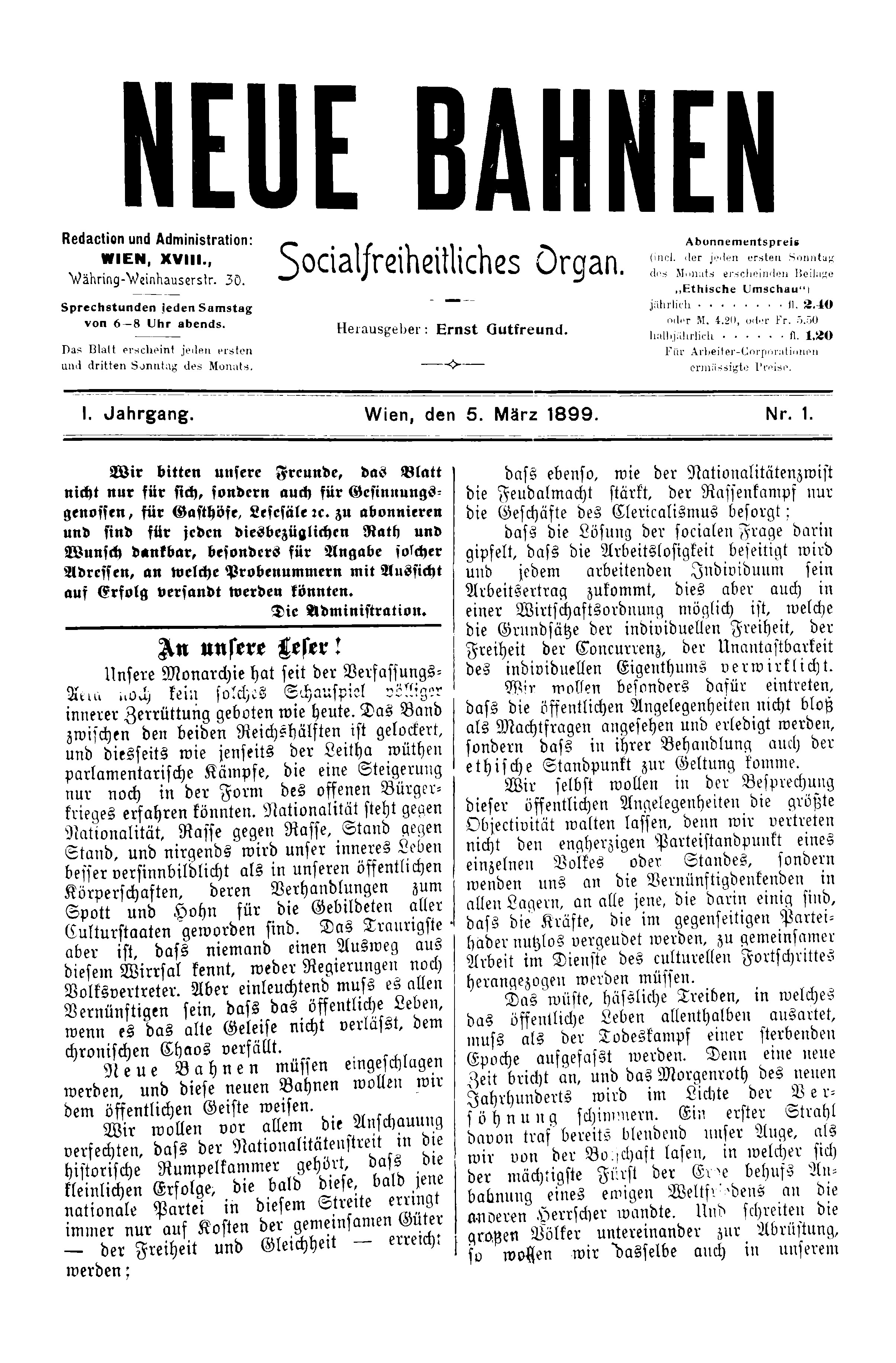 - Nr. 11 (21. September 1899), 4 S.; konfisziert mit Erlass des Landes- als Pressgericht Wien vom 23. September 1899