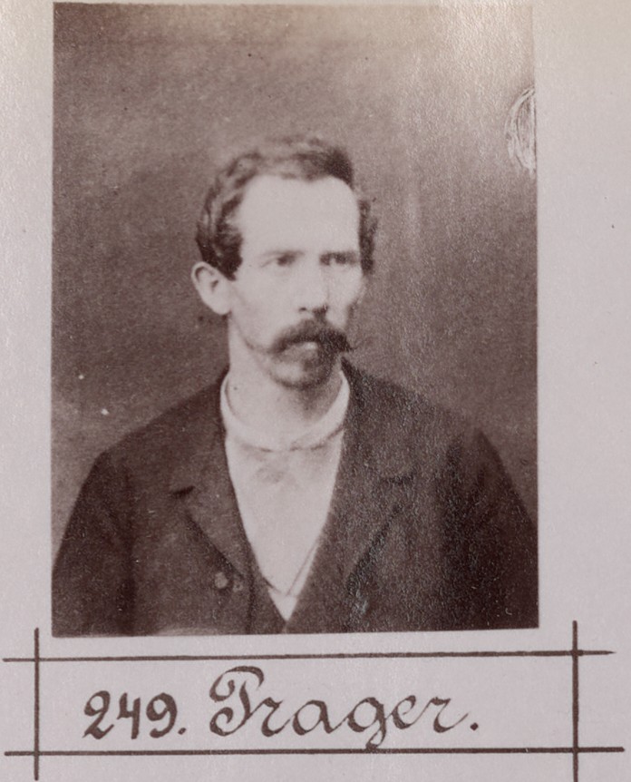 Der gelernte Silberarbeiter und spätere Fabrikarbeiter Hermann Prager, zuständig nach Edlitz (Niederösterreich), war früh ein Anhänger der radicalen Arbeiterbewegung. Er wurde am 7. Februar 1886 wegen sozialistischer Umtriebe von der Polizei-Direktion Wien aufgrund der Ausnahmsverordnungen vom 30. Jänner 1884 aus deren Geltungsbereich ausgewiesen und unter polizeiliche Überwachung gestellt: »516 Prager Hermann, Fabriksabeiter, zu Berndorf in Nied.-Oest. im J. 1857 geb., nach Edlitz, Bez. Baden in Nied.-Oest. zust., k., verh., 1.73m gr., schwach, mit blass., längl. Ges., roth-br. H., gr. Aug., schwachen Augenbr., röthl. Schnurrb., hoher Stirne, stumpfer Nase, oval. Kinn, etwas kahlköpfig an der Stirnseite, wurde mit h. ä. Erk. vom 7. Februar 1886, Z. 356 Pr., weg. sozialist. Umtriebe auf Grund der Verordnung des h. Gesammtministeriums vom 30. Jänner 1884 in Gemäßheit des §. 3 lit. c des Ges. vom 5. Mai 1869, R.-G.-Bl. Nr. 66, weg. Gefährlichkeit für die öffentl. Ordnung aus dem Geltungsgebiete der obzitirten Ministerial-Verordnung mit Ausnahme der Gemeine St. Veit a. d. Triesting in Nied.-Oest. ausgewiesen. Pol.-Dion. Wien 11/2. 86.«1 Hermann Prager durfte aber aufgrund der Anweisung der Polizei-Direktion Wien vom 7. Juli 1886 probeweise zurückkehren.